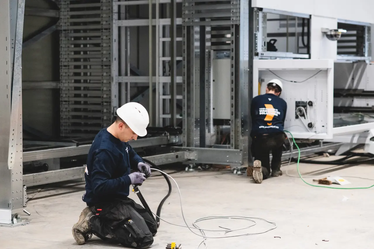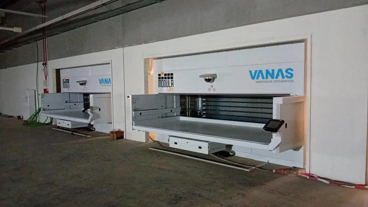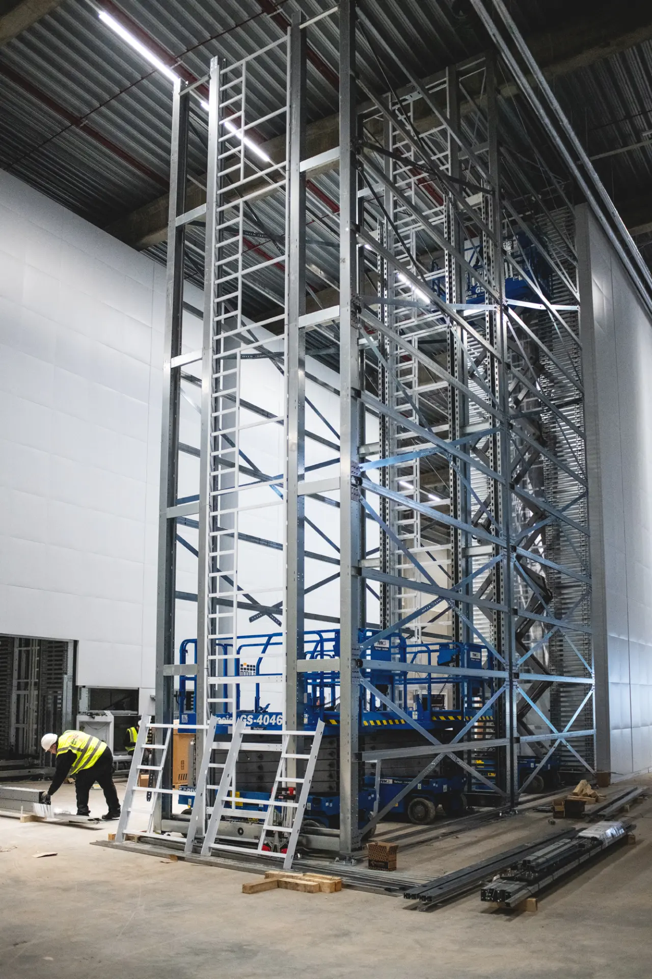 Om de logistieke efficiëntie verder te verhogen, is er gekozen voor een geavanceerd systeem van conveyors, die de in- en outbound van producten faciliteren. Deze zijn volledig geïntegreerd met het WMS-software van zowel Vanas als de klant, wat zorgt voor een naadloze en foutloze productstroom. Naast de liften heeft ons team ook de volledige hal uitgerust met palletrekken. Met 17 rijen van 22 secties, en rekken die tot 13 meter hoog reiken, was dit een omvangrijke taak. Ons team van ervaren techniekers, onder leiding van een projectmanager, zorgde ervoor dat alles volgens planning verliep. Ons backoffice team speelde ook een cruciale rol in het ondersteunen van het project, waarbij zij continu klaar stonden om waar nodig bij te sturen.