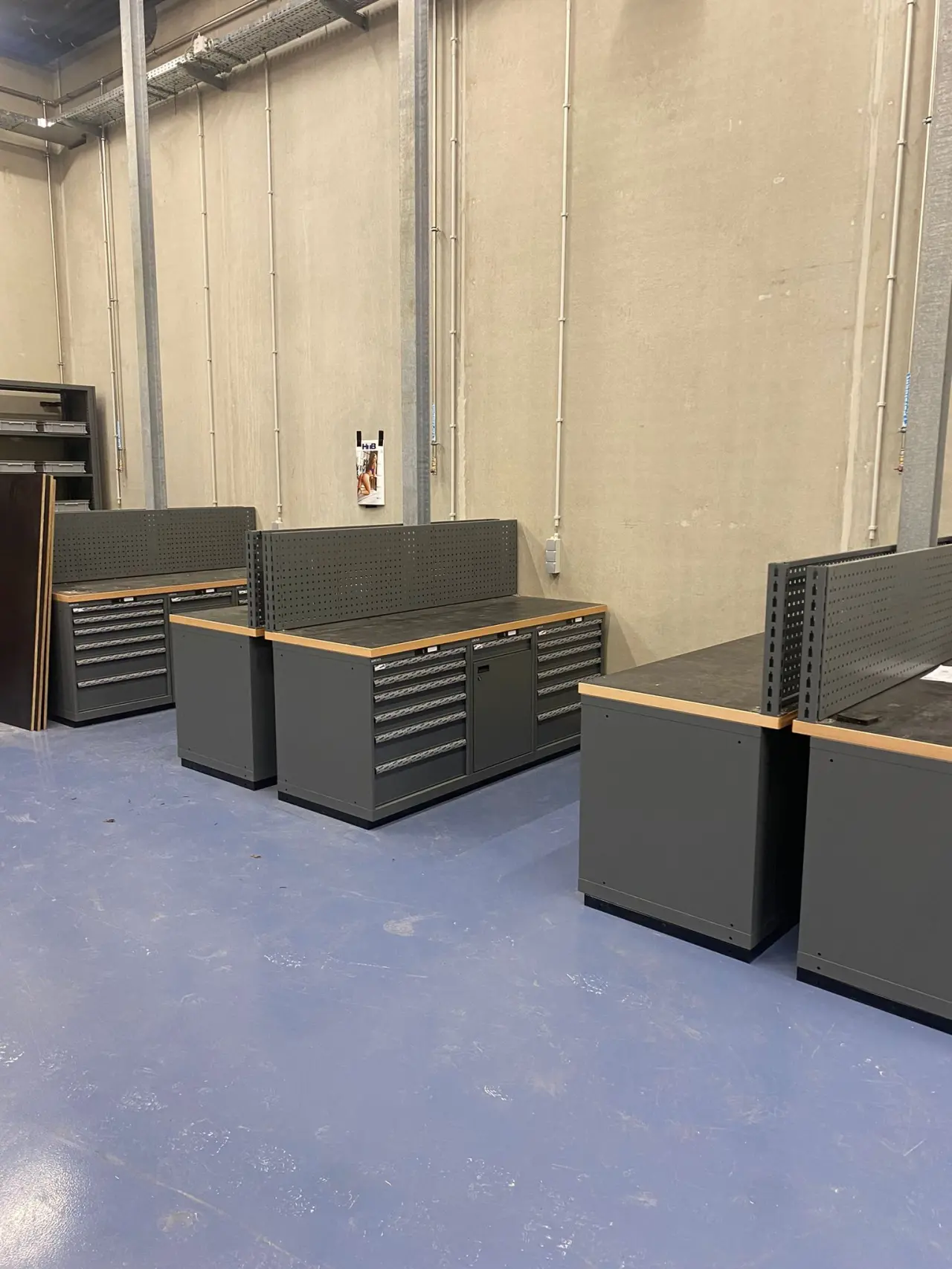 Naast opslagsystemen richten we ons ook op de volledige inrichting van werkplaatsen met ladekasten en werktafels die de ergonomie bevorderen, waardoor werknemers efficiënter en comfortabeler kunnen werken. - Veiligheidsmaatregelen