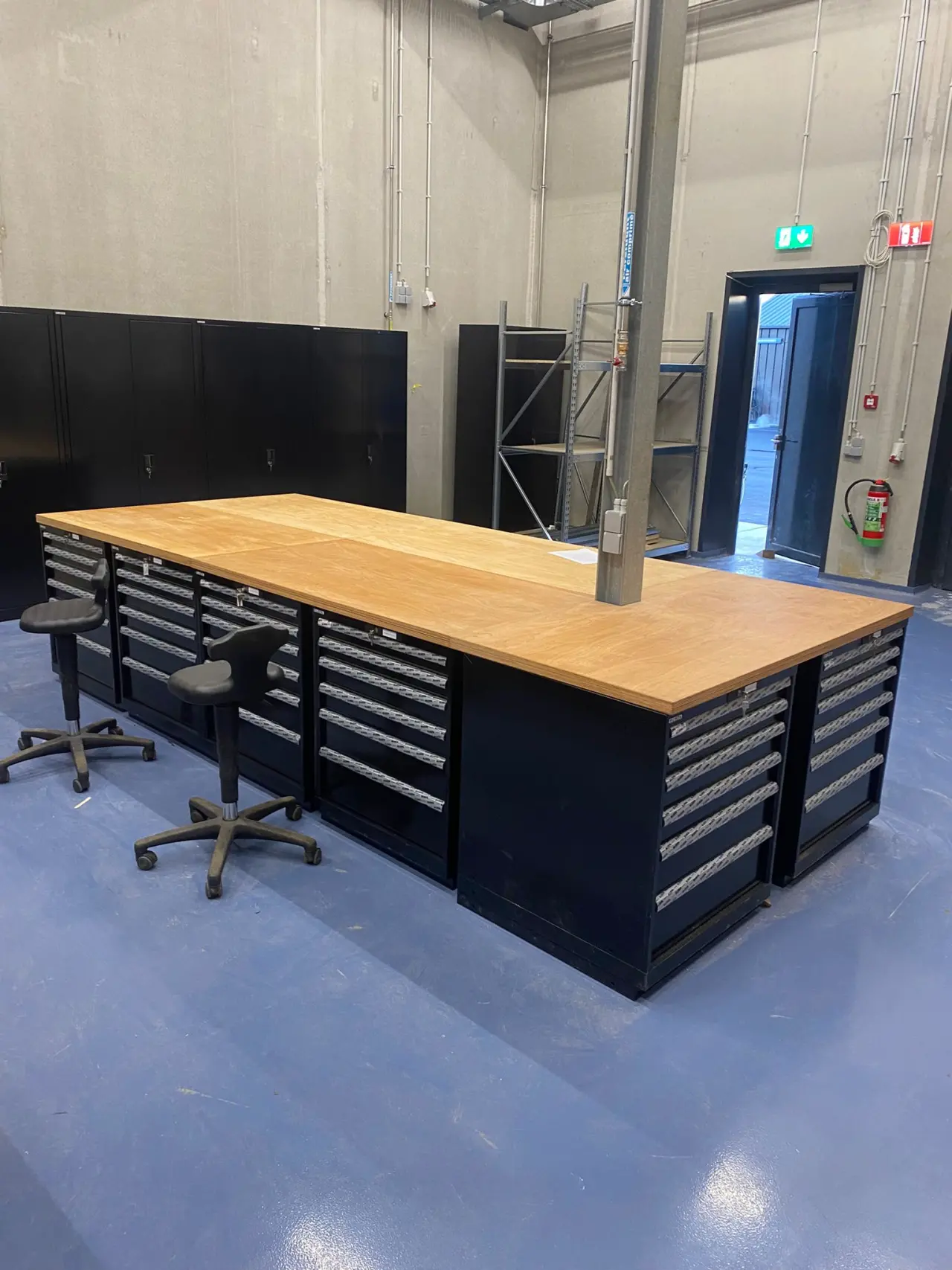 We hebben diverse magazijn uitgerust met op maat gemaakte opslagsystemen, afgestemd op de unieke behoeften van elke klant, van zware lasten tot fijnmazige opslag. - Werkplaatsinrichting